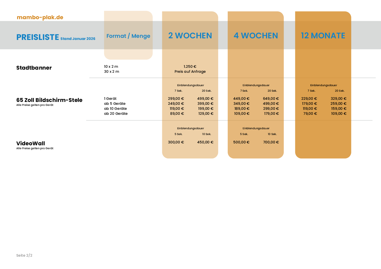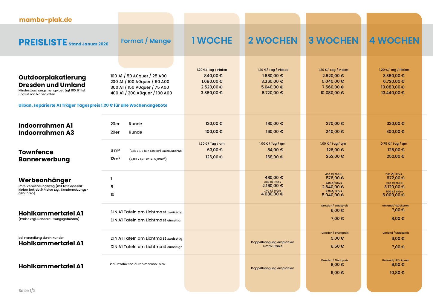 Hier finden Sie unsere aktuelle Preisliste für die meisten Produkte.
