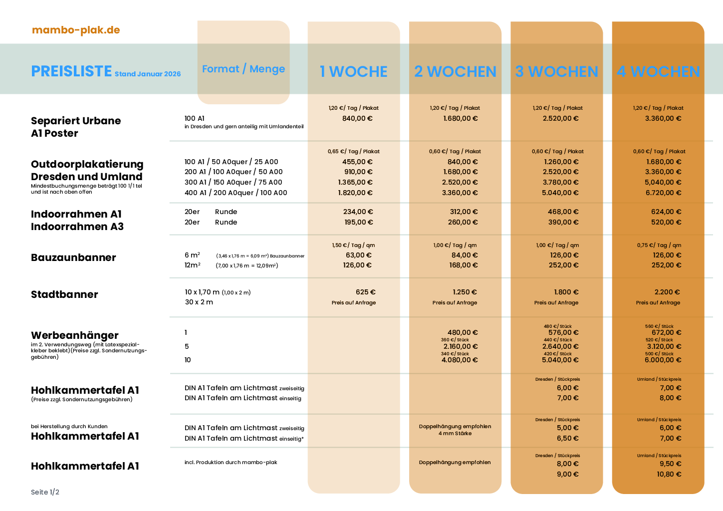 Hier finden Sie unsere aktuelle Preisliste für die meisten Produkte.